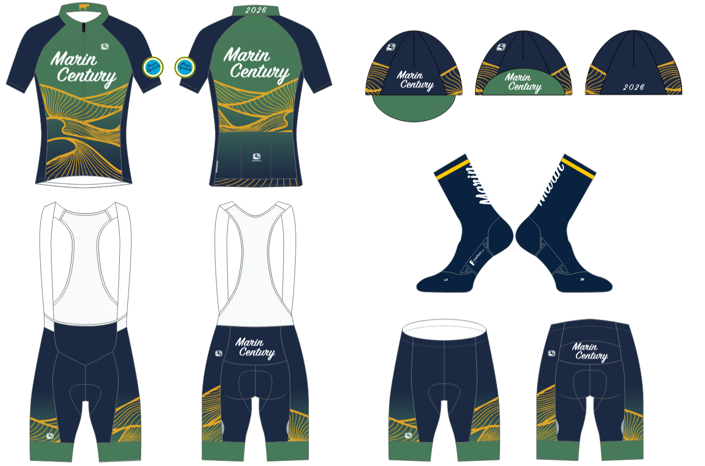Jerseys, shorts/bibs, and socks will be mailed to you. If you order before the cut off date, May 22, 2026, then you should receive your clothing in time to wear it during the Marin Century. If you ordered later than that, you will receive it in the mail in late October.